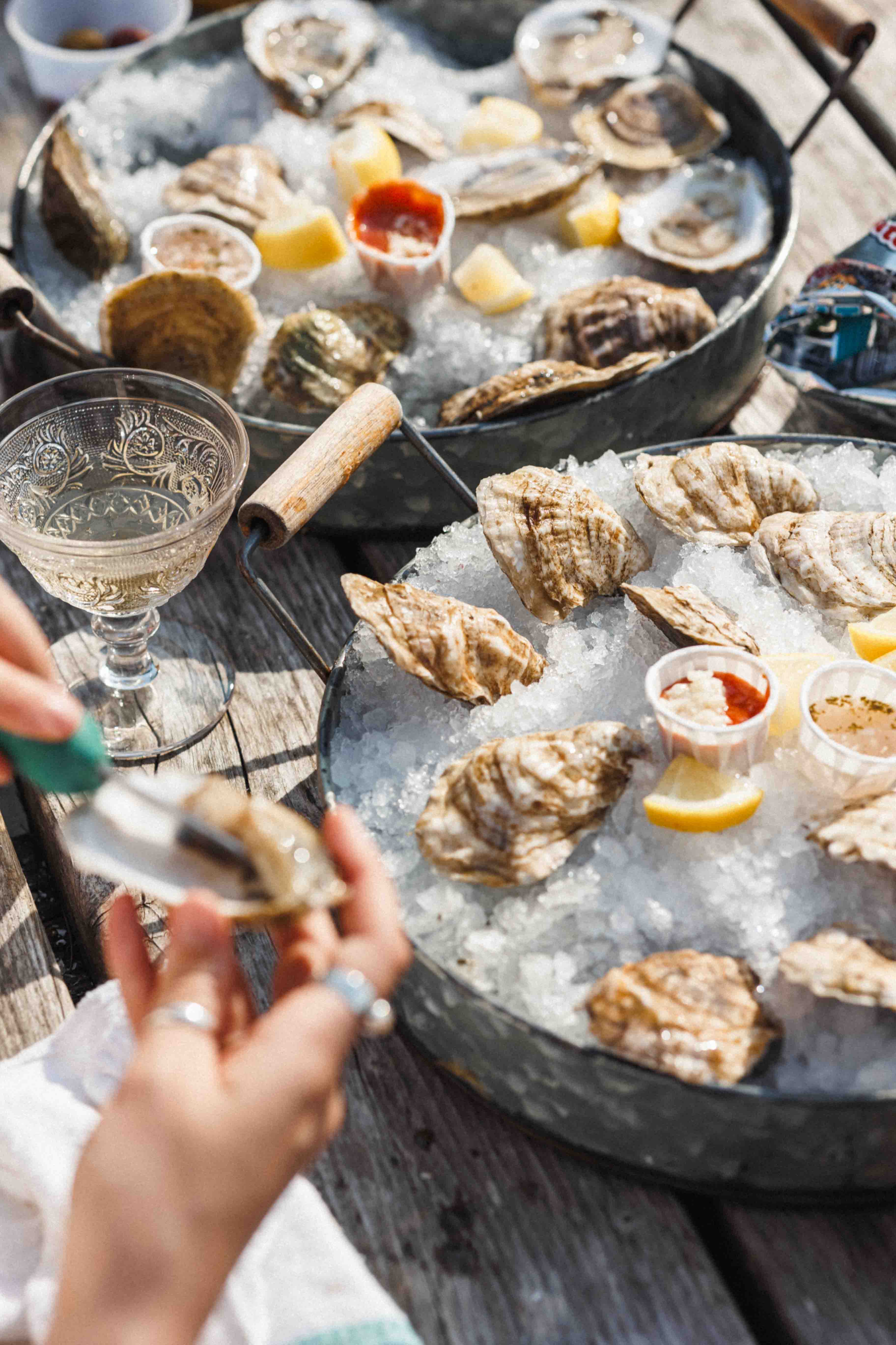Before or after your sauna, hang out on the patio, eat some fresh oysters, snack on tinned fish and cocktails.