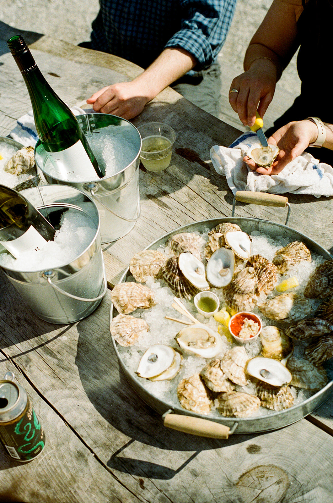Before or after your sauna, hang out on the patio, eat some fresh oysters, snack on tinned fish and cocktails.